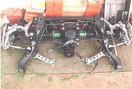 The RX-7 Turbo II and TT rears are larger and stronger yet with an 8" ring gear. The TII rear will bolt to the Miata subframe since it uses the same 'wing' type frame mounts but requires modifying the PPF to accept the long pinion front housing (also using the Miata specific mounting bushings). A shortened drive shaft will need to be custom made with the larger TII pinion flange and the smaller Miata transmission yok and then having the larger TII specific halfshafts resplining to fit the smaller Miata hub. The 93+ TT rear has a short pinion and uses a similar PPF mounting on the front housing, but unfortunatley it does not use the wing type frame mounts and something would have to be fabricated. The diff housing designs between the TII and the TT are quite a bit different so unlike the Miata and NA RX-7 where the housing parts can be mixed 'n matched, the TT front housing cannot be bolted to the TII rear housing.