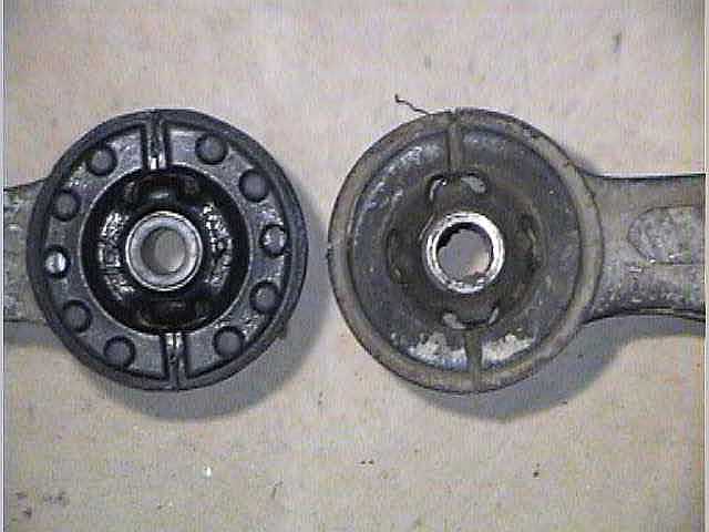 The smaller diameter and shorter Miata rear bushing vs the 86-91 RX-7 bushing